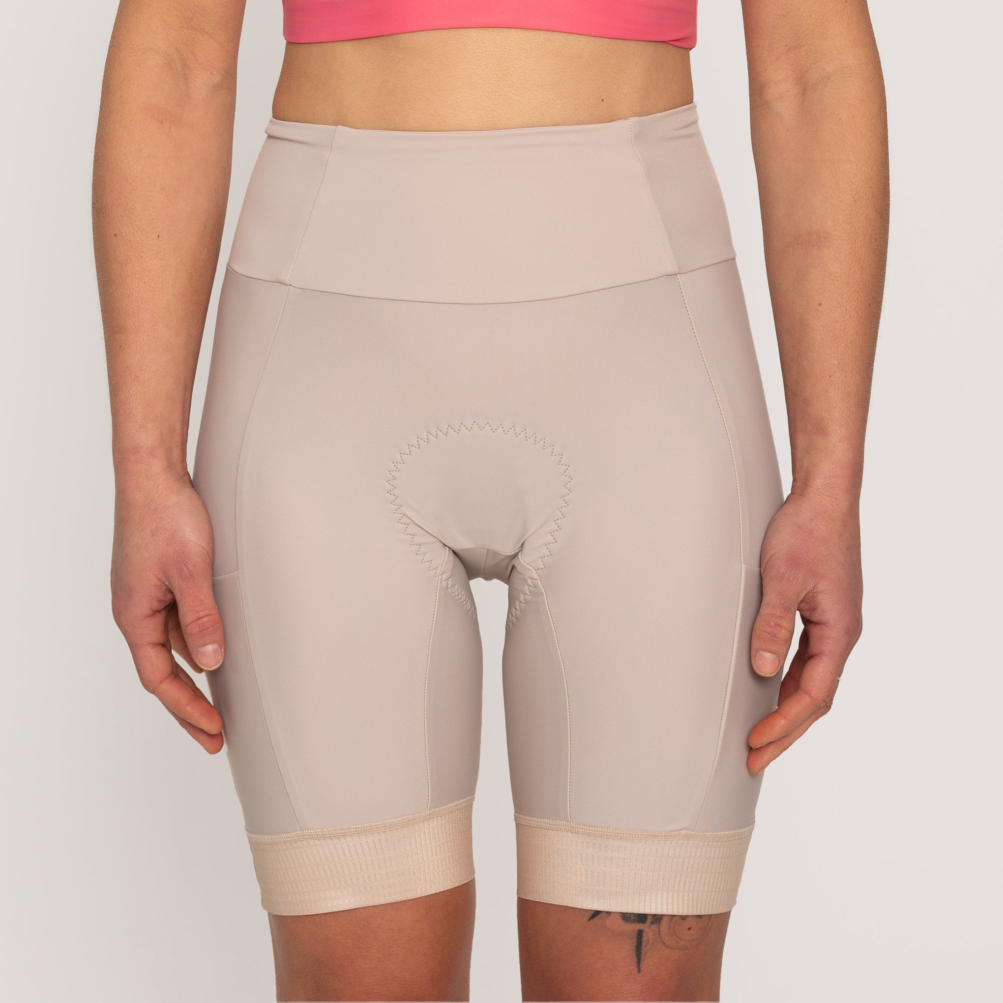 Our high waisted cycling shorts are designed to provide the right amount of compression to help prevent muscular fatigue. Leg openings feature a 50mm premium Italian gripper band - the softest, highest quality gripper band on the market! Designed with a feminine cut and meant to be light, fitted and comfortable. Superior quality Elastic Interface ® cycling chamois with carbon treatment evacuates heat and moisture and helps prevent chaffing.